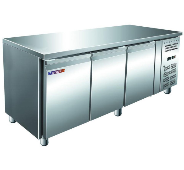 1795х700х860 мм; 220В, 0.51кВт; 465л; -10/-20; регулируемые ножки 125-165 мм, 3 двери; столешн.нерж.сталь; б/борта; динамическое охлаждение; R290, 80г