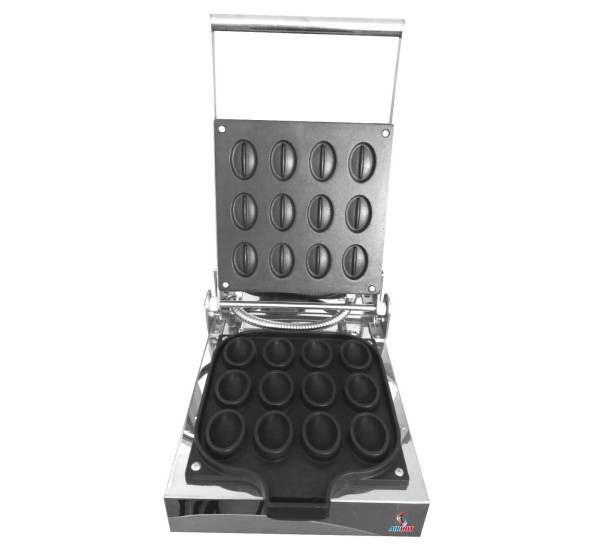 260х470х180мм, 220В, 1,1кВт, размер рабочей поверхности 185х185 мм, для печенья в форме кофейных зерен (не полые) , поверхность алюминий с антипригарным покрытием, корпус нерж сталь