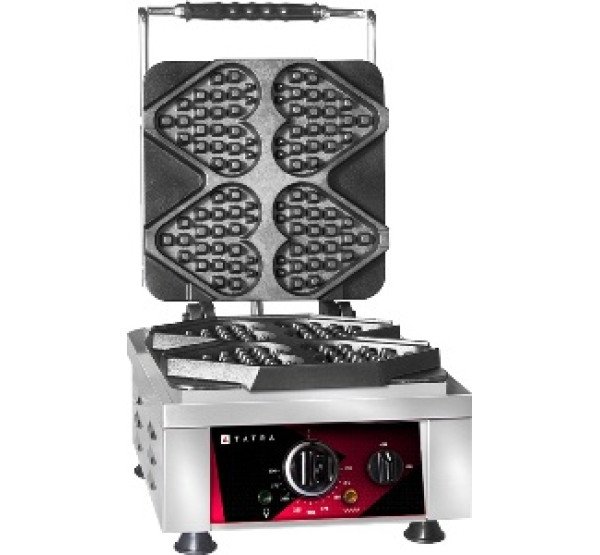 300х440х320 мм, 230В, 2,2 кВт, фиксированные рабочие поверхности из чугуна, 1 зона, вафли в виде сердца 4 х 132х125х24 мм, жиросборник, термостат 50- 300C, корпус из нержавеющей стали